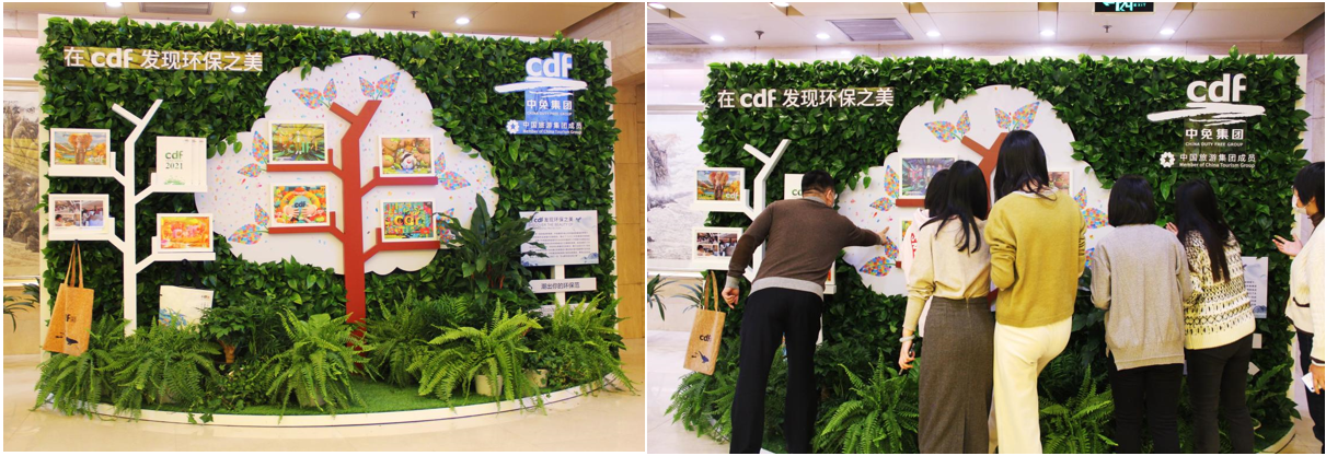 近日,在中免集團總部及三亞國際免稅城、海口日月廣場免稅店、??诿捞m機場免稅店舉行了“在cdf發(fā)現(xiàn)環(huán)保之美”環(huán)?;踊顒樱顒蝇F(xiàn)場展示了《2021中免集團環(huán)保綠皮書》、優(yōu)秀環(huán)保海報設計作品,并與消費者互動在環(huán)保樹上留下環(huán)保印記,領取定制環(huán)保手提袋、環(huán)保臺歷等紀念品。