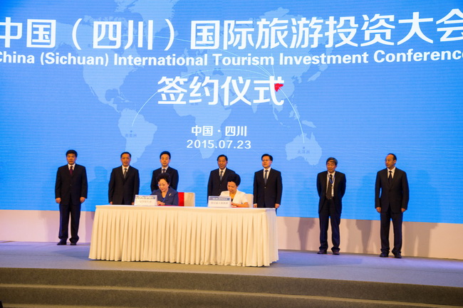 7月23日,集團(tuán)姜巖總經(jīng)理、鄭江副總會(huì)計(jì)師、戰(zhàn)發(fā)部陳賢君總經(jīng)理、資產(chǎn)板塊田群總經(jīng)理、景區(qū)板塊曲濤常務(wù)副總經(jīng)理等一行參加了在成都舉辦的“中國(四川)國際旅游投資大會(huì)”。會(huì)上,姜巖總經(jīng)理代表集團(tuán)與四川省政府簽訂了《促進(jìn)中國港中旅集團(tuán)與四川省政府關(guān)于旅游業(yè)發(fā)展戰(zhàn)略合作協(xié)定》。四川省委書記王東明、省長魏宏、國家旅游局局長李金早、中國房地產(chǎn)業(yè)協(xié)會(huì)會(huì)長劉志鋒等領(lǐng)導(dǎo)出席會(huì)議。中國國旅集團(tuán)董事長兼總經(jīng)理王為民、華僑城集團(tuán)公司副總裁劉平春、大連萬達(dá)集團(tuán)董事長王健林、新希望集團(tuán)董事長劉永好等120多家境內(nèi)外知名旅游企業(yè)負(fù)責(zé)人參加了會(huì)議。