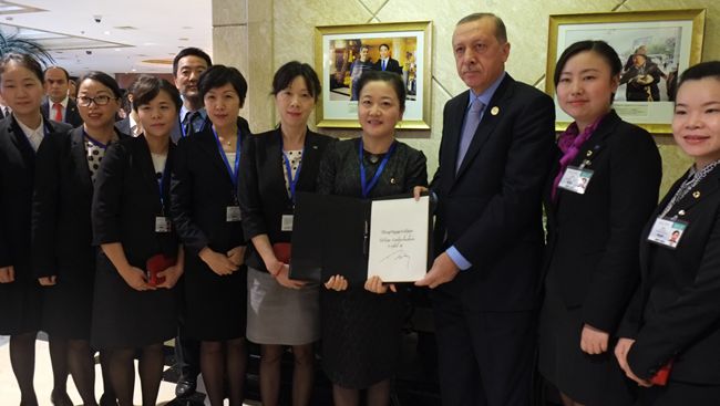 9月5日下午,土耳其總統(tǒng)埃爾多安離開酒店前,對杭州維景的服務(wù)深表滿意,在衆(zhòng)多媒體的關(guān)注下,爲(wèi)杭州維景簽名留念,幷與管理人員合影,感謝杭州維景提供的溫馨、細(xì)緻、周到的服務(wù),同時盛情邀請酒店員工去土耳其觀光遊覽。