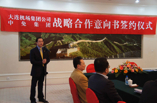 為了確保擴(kuò)建后的大連機(jī)場擁有完善的服務(wù)功能和高檔的商業(yè)形象,中國免稅品(集團(tuán))有限責(zé)任公司與大連周水子國際機(jī)場集團(tuán)公司與于2011年3月10日在大連簽署了戰(zhàn)略合作意向書。簽約儀式上,大連機(jī)場集團(tuán)公司黨委書記、副總經(jīng)理任恩巖和中免集團(tuán)總裁盧路分別發(fā)言,大連機(jī)場集團(tuán)公司黨委副書記、副總經(jīng)理杜志淵和中免集團(tuán)副總裁陳國強(qiáng)分別代表兩家企業(yè)簽約,雙方領(lǐng)導(dǎo)和來賓共同見證了簽約全過程。