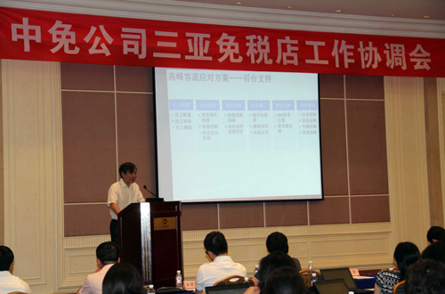 海南離島旅客免稅購物政策自2011年4月20日在中免集團(tuán)三亞免稅店試點(diǎn)運(yùn)營(yíng)至今已近三月。來自中免集團(tuán)總部、三亞免稅店、香港中免公司各相關(guān)業(yè)務(wù)部門的60余位負(fù)責(zé)人及業(yè)務(wù)骨干參加了此次會(huì)議。中免集團(tuán)盧路總裁,趙鳳副總裁、王軒副總裁、曾江前總會(huì)計(jì)師、顧納新總裁助理等領(lǐng)導(dǎo)出席了會(huì)議并參與分組研討。