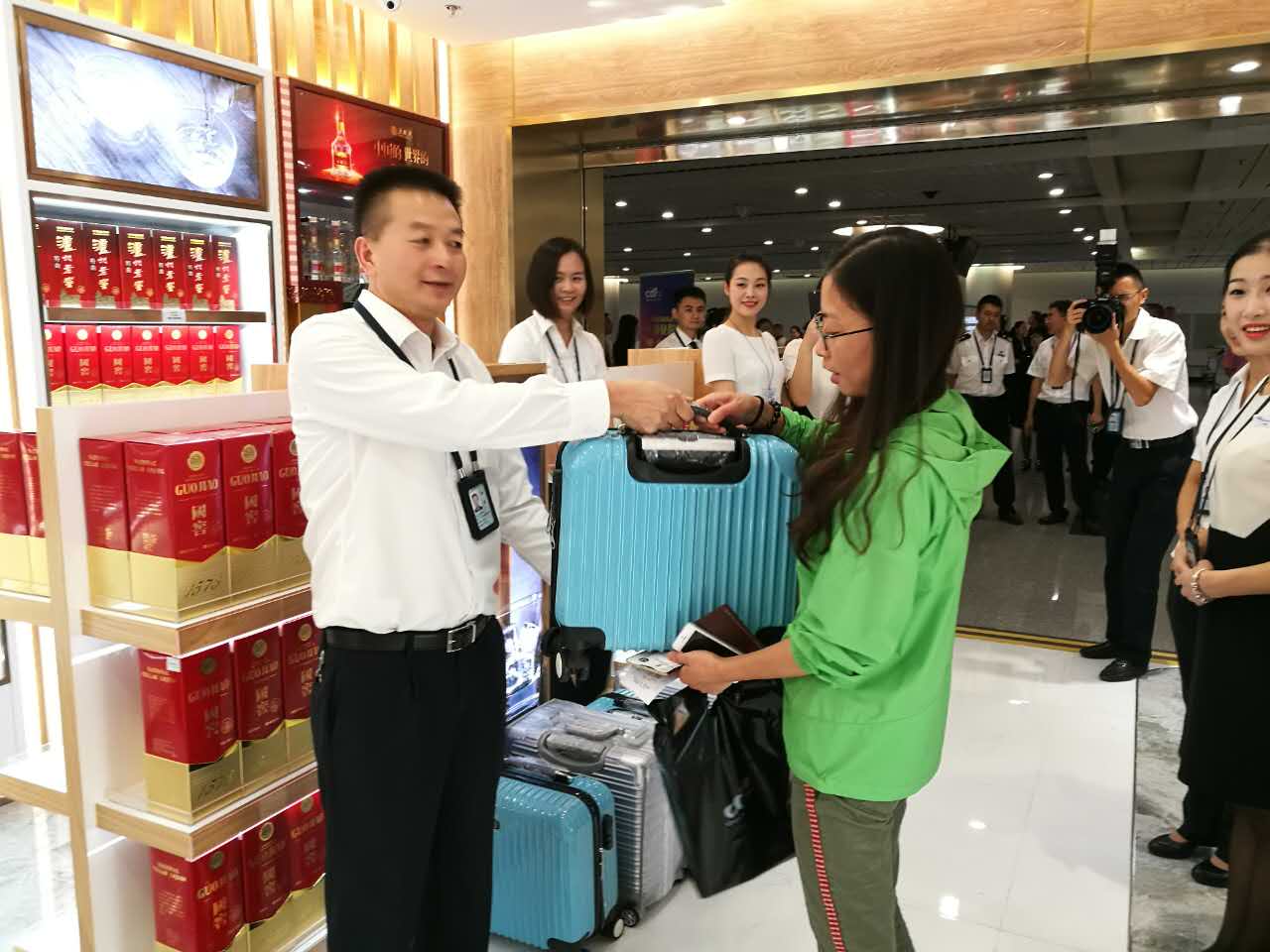 免稅店開(kāi)業(yè)當(dāng)日,中免集團(tuán)董事長(zhǎng)陳建山、總會(huì)計(jì)師劉曉東,四川機(jī)場(chǎng)集團(tuán)董事長(zhǎng)李偉、副總經(jīng)理孫紹強(qiáng),機(jī)場(chǎng)旅服公司總經(jīng)理蔣富榮、書(shū)記劉國(guó)軍等多位領(lǐng)導(dǎo)蒞臨并見(jiàn)證了這一重要時(shí)刻,領(lǐng)導(dǎo)們對(duì)免稅店全體干部和員工在工作中加班加點(diǎn),不怕困難、專業(yè)高效的精神給予了充分肯定,并希望大家再接再厲,工作更上一層樓。免稅店開(kāi)業(yè)之時(shí),《成都商報(bào)》、《華西都市報(bào)》、《川報(bào)觀察》、《四川在線》等媒體相繼進(jìn)行了宣傳報(bào)道,同時(shí)免稅店亦開(kāi)展了“前20名旅客進(jìn)店有禮”等開(kāi)業(yè)活動(dòng),極大地提升了免稅店品牌知名度,推廣了進(jìn)境免稅業(yè)務(wù),營(yíng)造了免稅店新形象。