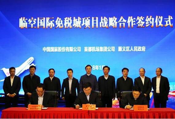 1月12日,中國(guó)國(guó)旅股份有限公司、首都機(jī)場(chǎng)集團(tuán)、順義區(qū)三方在京舉行臨空國(guó)際免稅城項(xiàng)目戰(zhàn)略合作框架協(xié)議簽約儀式。中國(guó)旅游集團(tuán)副總經(jīng)理、國(guó)旅股份公司董事長(zhǎng)李剛,首都機(jī)場(chǎng)集團(tuán)公司總經(jīng)理、黨委副書(shū)記劉雪松,北京市順義區(qū)委書(shū)記王剛出席簽約儀式,國(guó)旅股份公司總經(jīng)理彭輝、首都機(jī)場(chǎng)集團(tuán)黨委書(shū)記、副總經(jīng)理宋勝利與順義區(qū)區(qū)委常委、副區(qū)長(zhǎng)初軍威代表三方在協(xié)議上簽字。