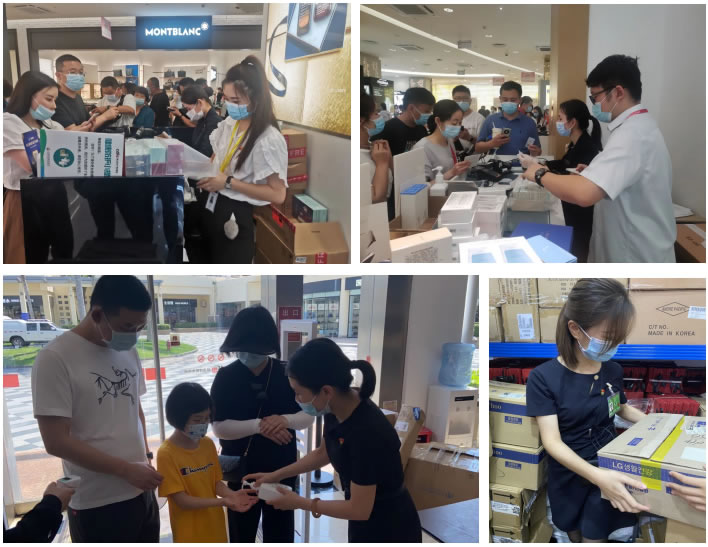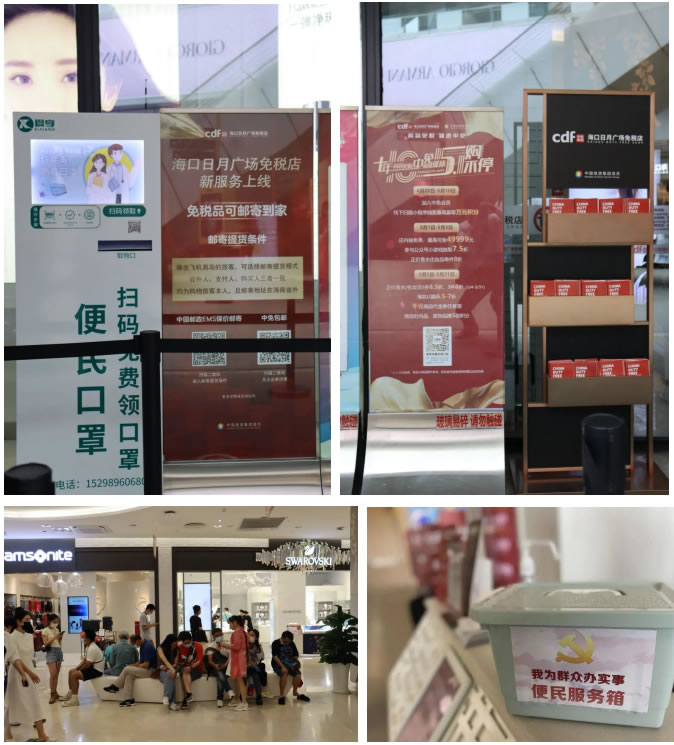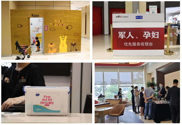 各門店結(jié)合實際情況,考慮顧客購物細節(jié),提供了多項貼心服務:放置離島免稅政策說明牌,防疫溫馨提示牌、店面各品牌中英文導購圖,方便顧客了解相關(guān)信息;人流密集區(qū)域加裝空調(diào),調(diào)節(jié)舒適溫度;放置6套沙發(fā)、14條長椅,配備客用飲水機和紙杯,方便顧客休息;提供女性用品、行李寄存、貴重物品遺失招領(lǐng)、嬰兒車服務和傘套機服務,加強細節(jié)服務;增加25部移動POS機,節(jié)省顧客排隊等候時間;門店出入口安裝人體熱成像測溫儀,提高防疫體溫檢測效率;配備口罩、手消液和醫(yī)用濕紙巾等防疫物資,方便顧客做好個人防護;設置客服專線,確保在1小時內(nèi)給予顧客答復。