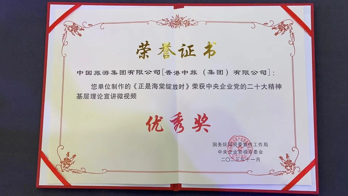 近日,由國務(wù)院國資委宣傳工作局主辦的2023年中央企業(yè)社會主義核心價值觀主題微電影(微視頻)展映征集活動和中央企業(yè)黨的二十大精神基層理論宣講優(yōu)秀微視頻展示活動在京成功舉辦。兩項活動各評選出百部優(yōu)秀作品,其中,由中國旅游集團選送,中免集團三亞市內(nèi)免稅店有限公司(中國旅游集團中免股份有限公司全資子公司)拍攝制作的微視頻《正是海棠綻放時》榮獲“中央企業(yè)黨的二十大精神基層理論宣講微視頻”優(yōu)秀獎。
