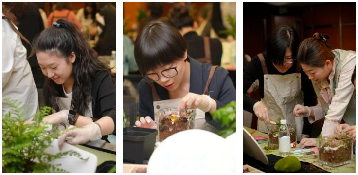 其中,微景觀藝術(shù)沙龍全天分為四場,公司總部200余名女性職工積極參與。活動(dòng)期間,學(xué)員在老師的帶領(lǐng)下,通過聽、聞、看、觸,打開并提升自我的感知力,在與自然共處的同時(shí),擁抱自己,接納自己。