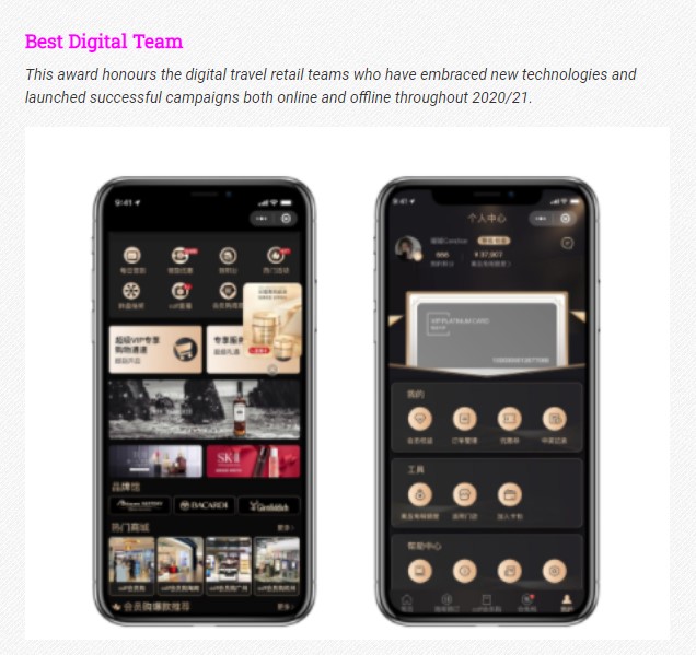 “最佳數(shù)字團隊”獎旨在表彰過去一年內全球旅游零售行業(yè)大力倡導數(shù)字創(chuàng)新和先進技術,并成功開展線上+線下活動數(shù)字營銷的旅游零售團隊。為更好滿足消費者需求,中免集團結合微信營銷生態(tài)系統(tǒng),于2020年11月正式上線“中免會員”微信小程序,經過多次迭代和發(fā)展,聚合了工具屬性、內容屬性、營銷屬性和電商屬性,為會員和品牌提供周到細致的全方位服務。