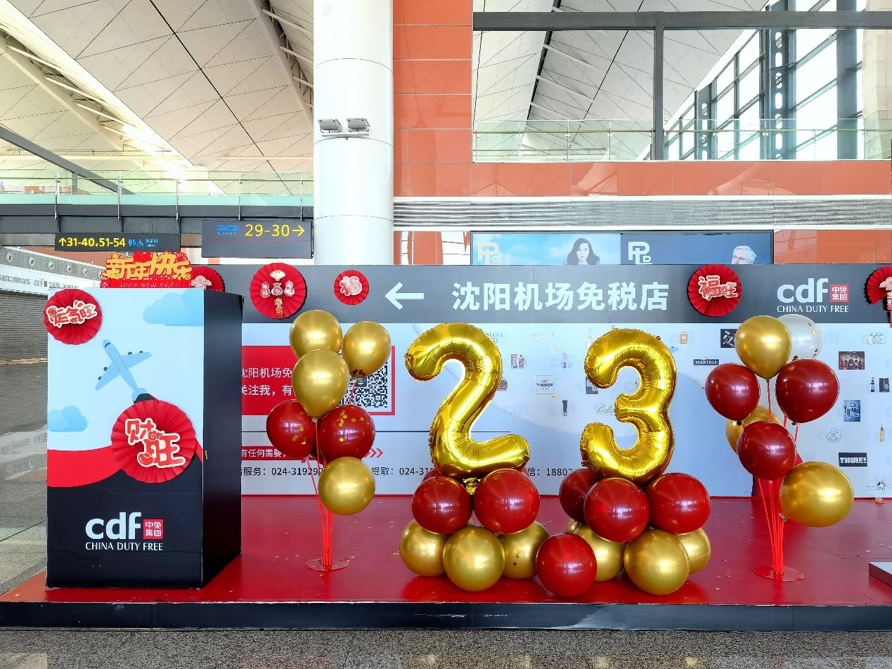 中免集團沈陽機場免稅店進出境店鋪裝飾一新,隨處可見紅紅火火的“新年快樂”、“福氣滿滿”等祝福語,讓旅客在家門口感受濃濃年味兒。店內(nèi)產(chǎn)品覆蓋化妝品、奢侈品、酒水等多種品類,店內(nèi)員工也以嶄新精神面貌為旅客提供優(yōu)質(zhì)的商品及服務(wù)。
